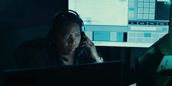 CICIが電話で話し、アンバーアラートで彼女の机を真剣に見ているSiedah ArrikaEkulona